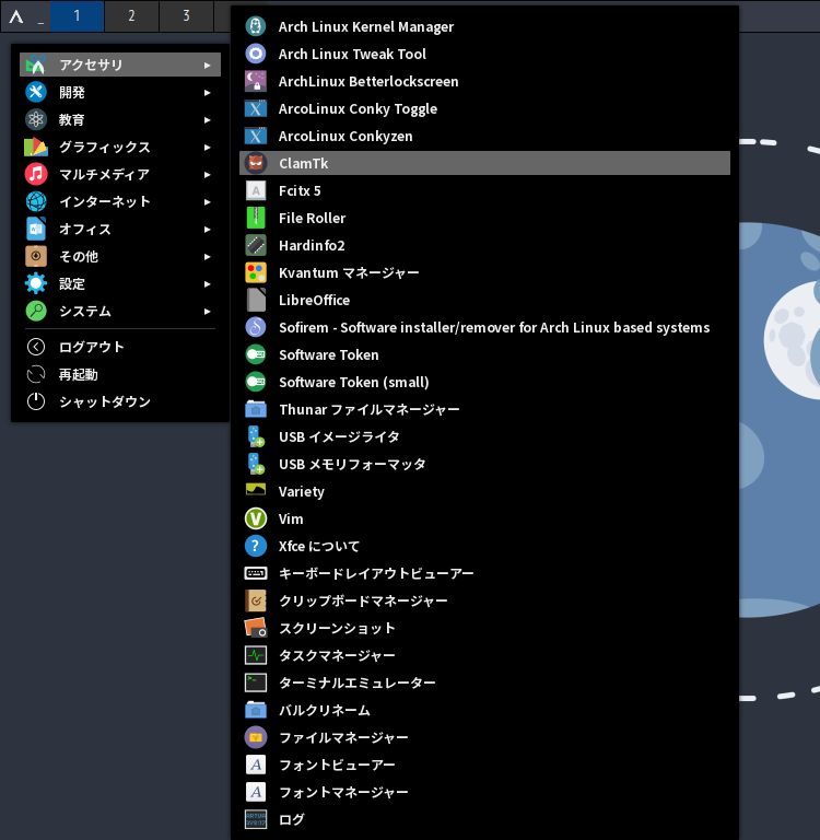 「Pamac」で、「clamtk」を検索して、インストールします。