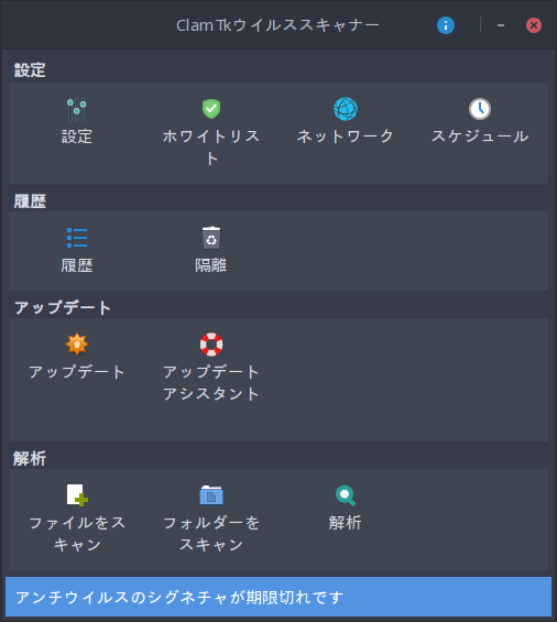 「ClamTk」は、「GUI」で操作するアンチウィルスソフトです。