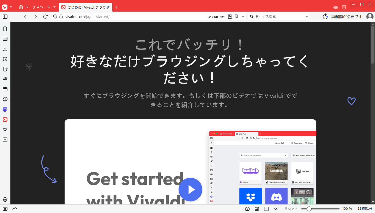 1. 概要 ブラウザとして、「Vivaldi」を使用します。 システムインストール時に選択していれば、デフォルトでインストールされています。 2. 起動 「スタート」→「ネットワーク」→「Vivaldi」
