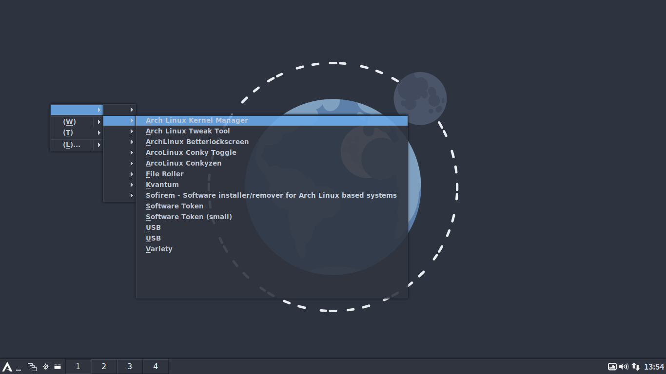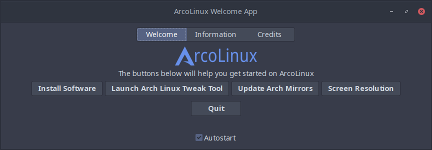 「スタート」→「設定」→「ArcoLinux Welcome」