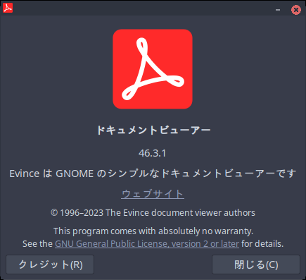 1. 概要 ドキュメントビューアとして、「Evince」を使用します。 「Evince」は、デフォルトでインストールされています。 2. 起動 「スタート」→「オフィス」→「ドキュメントビューア」