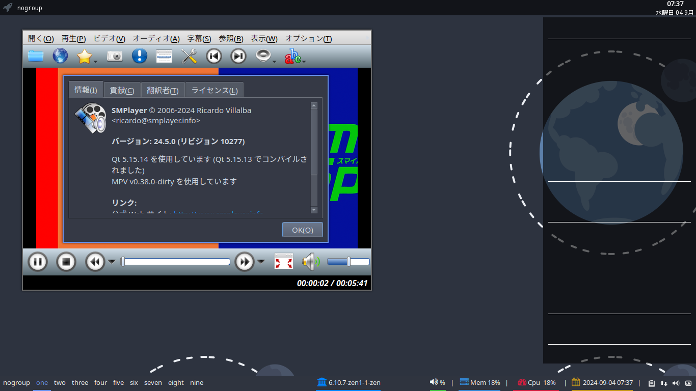 1. 概要 マルチメディアプレイヤーとして、「SMPlayer」を使用します。 システムインストール時に選択していれば、デフォルトでインストールされています。 2. 起動 「スタート」→「マルチメディア」→「SMPlayer」