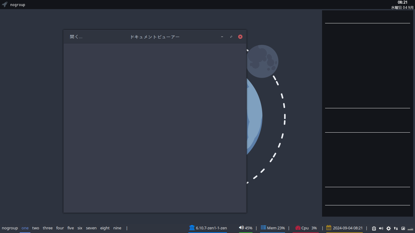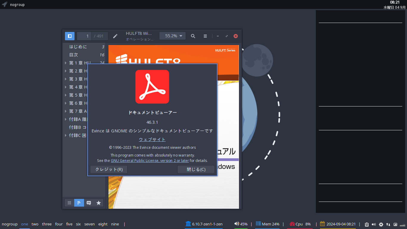1. 概要 マルチメディアプレイヤーとして、「Evince」を使用します。 「Evince」は、デフォルトでインストールされています。 2. 起動 「スタート」→「オフィス」→「ドキュメントビューア」