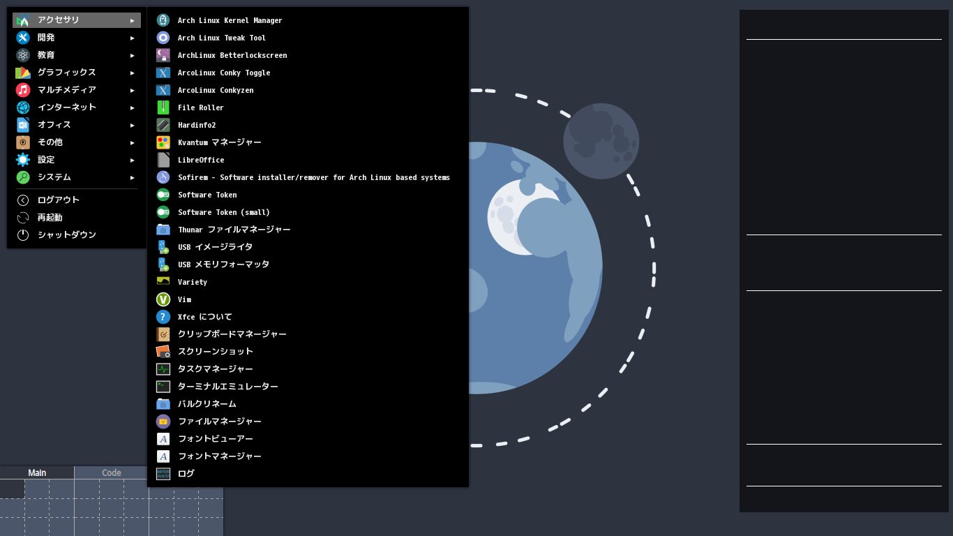 カスタマイズ後のデスクトップ・メニューです。