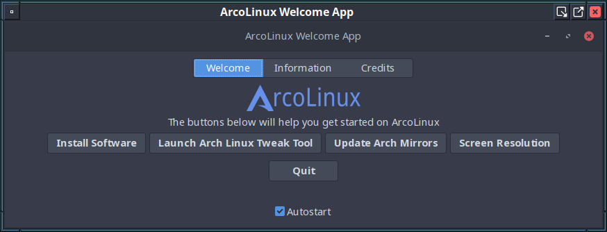 「設定」→「ArcoLinux Welcome」