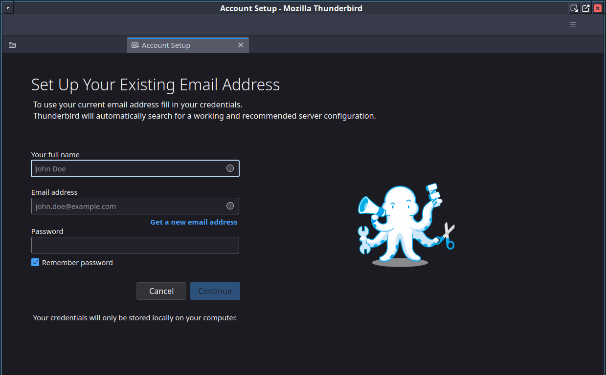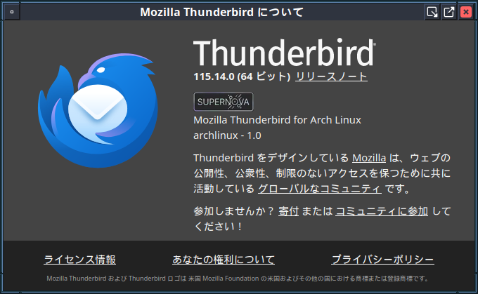 ArcoLinux - 24.07.01 - fvwm3 - メールクライアント Thunderbird