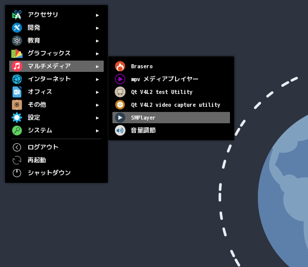 1. 概要 マルチメディアプレイヤーとして、「SMPlayer」を使用します。 システムインストール時に選択していれば、デフォルトでインストールされています。 2. 起動 「デスクトップ上クリック」→「マルチメディア」→「SMPlayer」