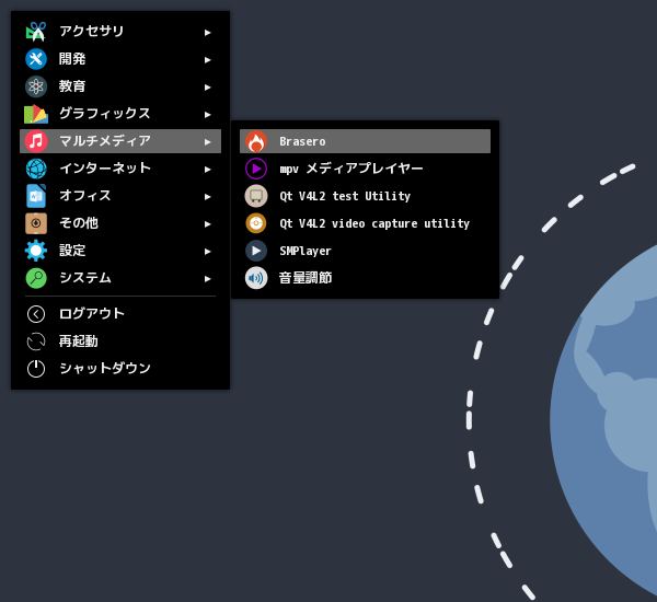 1. 概要 光ディスクライティングソフトとして、「Brasero」を使用します。 システムインストール時に選択していれば、デフォルトでインストールされています。 2. 起動 「デスクトップ上クリック」→「マルチメディア」→「Brasero」