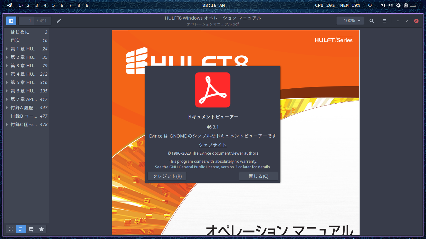 ArcoLinux - 24.07.01 - leftwm - ドキュメントビューア Evince