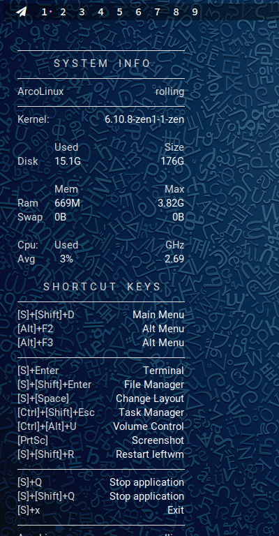 ${color5}${alignc}S H O R T C U T K E Y S${color}