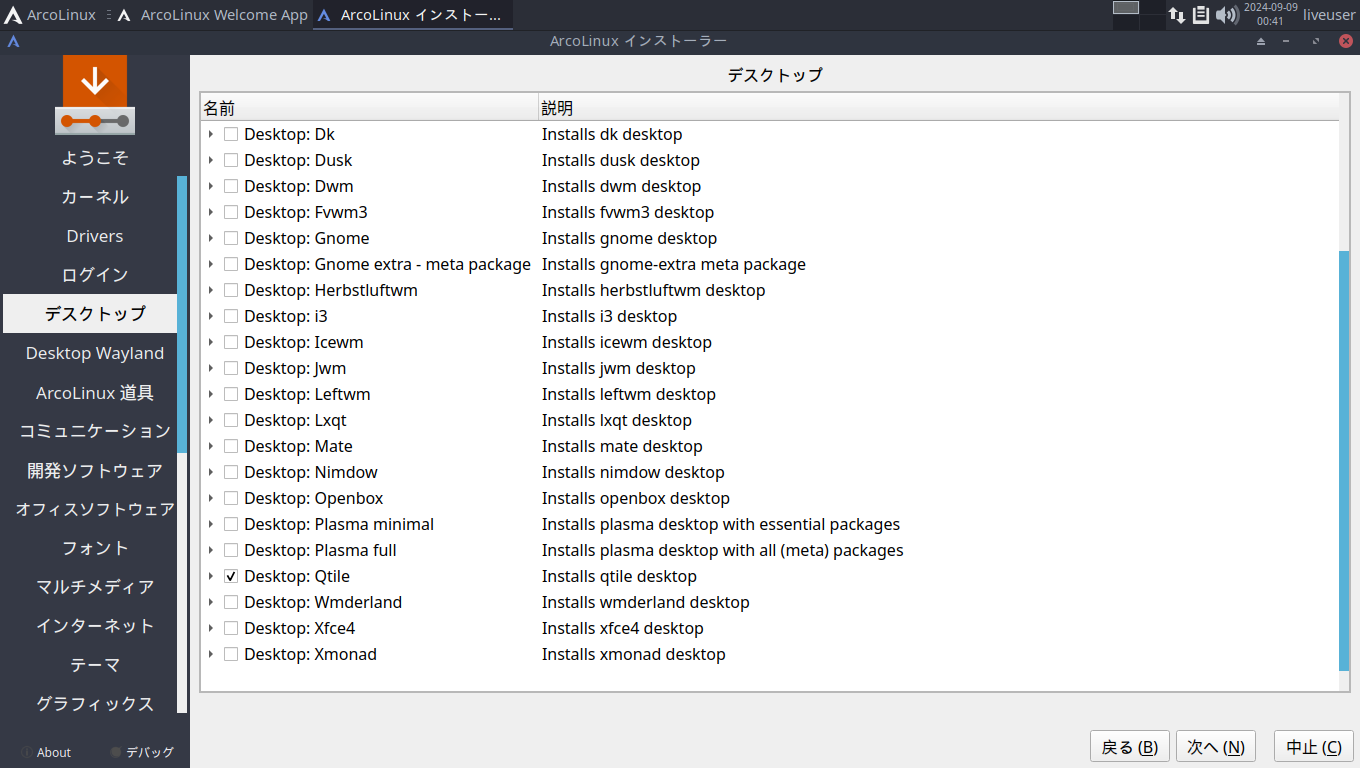 ArcoLinux - 24.07.01 - qtile - インストール