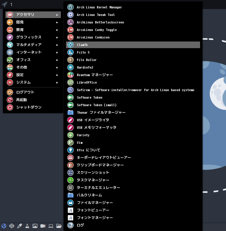「Pamac」で、「clamtk」を検索して、インストールします。