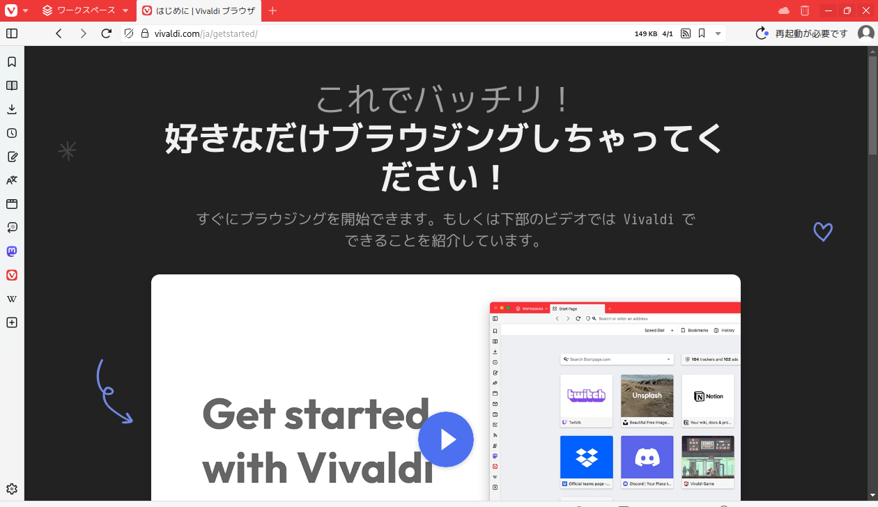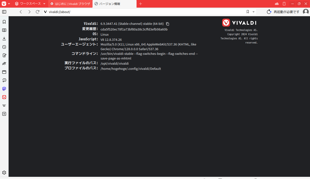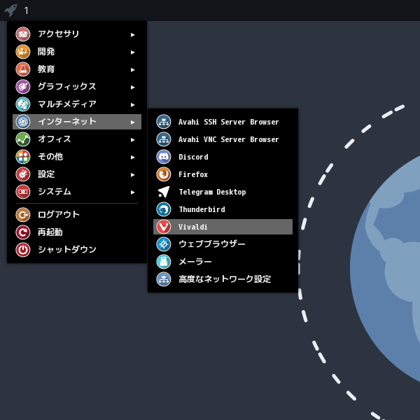 ブラウザとして、「Vivaldi」を使用します。  システムインストール時に選択していれば、デフォルトでインストールされています。