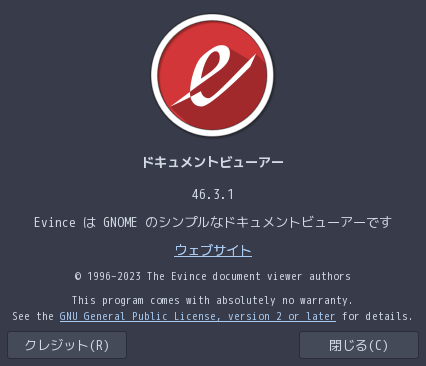 1. 概要 ドキュメントビューアとして、「Evince」を使用します。 「Evince」は、デフォルトでインストールされています。 2. 起動 「スタート」→「オフィス」→「ドキュメントビューア」