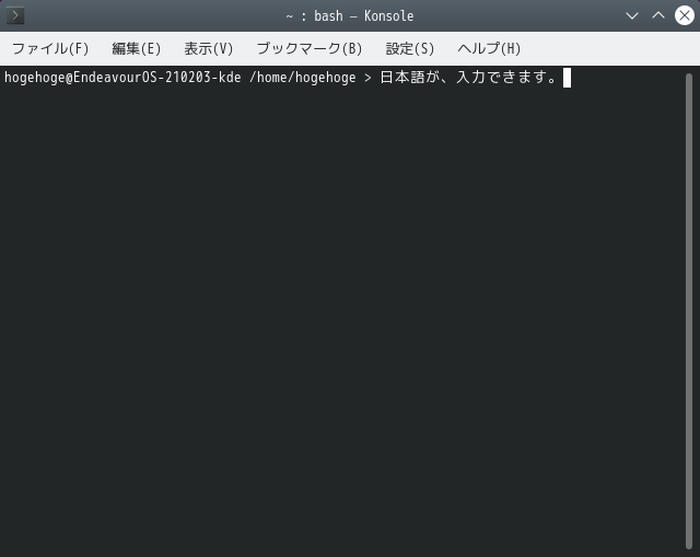 このプラットフォームでは、「Konsole」で日本語入力できます。
