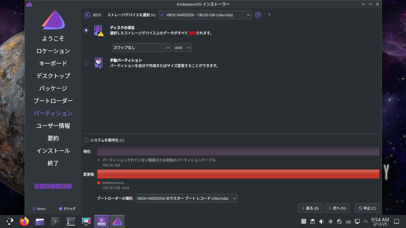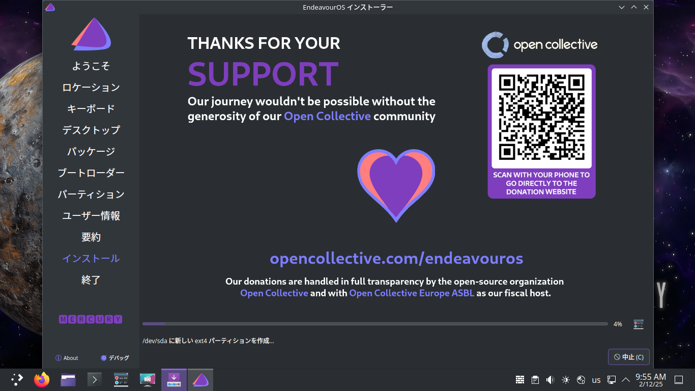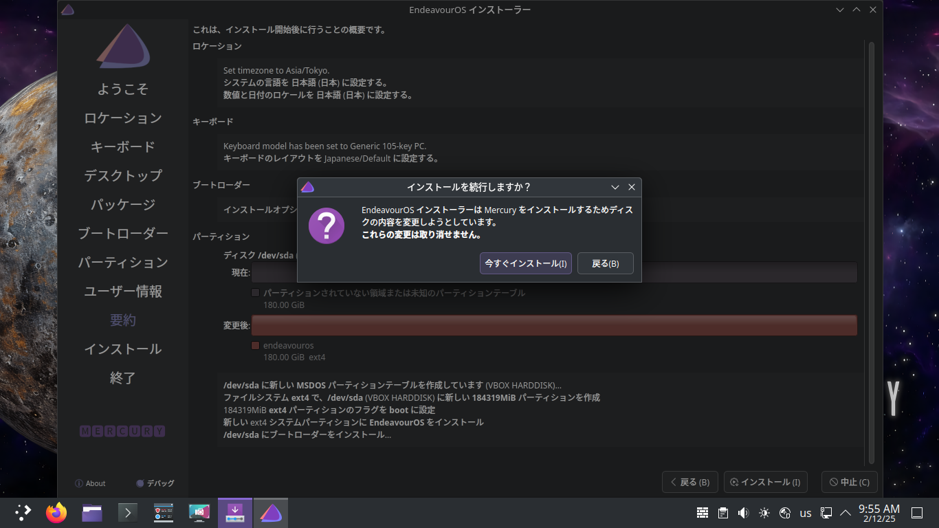 「EndeavourOS」は、比較的、頻繁にインストール手順が変わります。