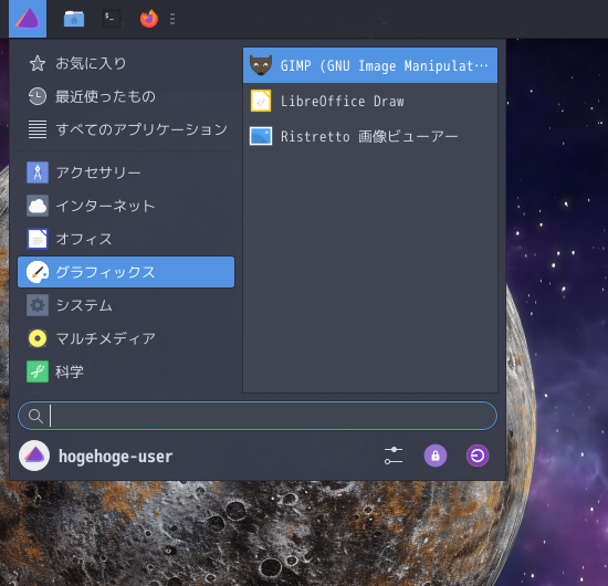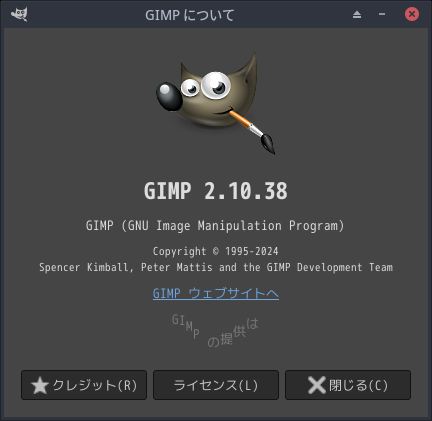 1. 概要 画像編集ソフトとして、「GIMP」を使用します。 2. インストール 「root」ユーザ権限で。 yes | pacman -S gimp 3. 起動 「スタート」→「グラフィックス」→「GIMP」