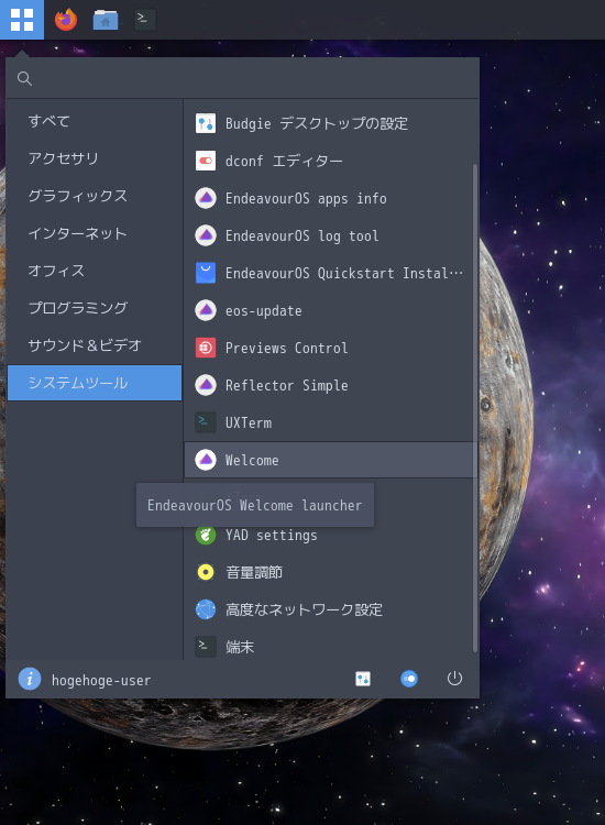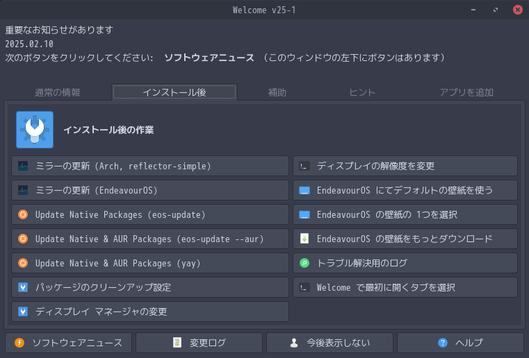EndeavourOS - 2025.02.08 - BUDGIE - 基本操作