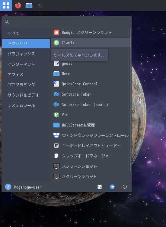 EndeavourOS - 2025.02.08 - BUDGIE - アンチウィルス ClamTk