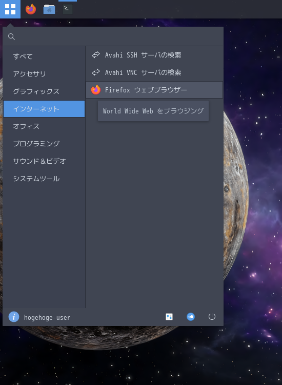 1. 概要 ブラウザとして、「Firefox」がデフォルトでインストールされ、日本語化されています。 2. 起動 「スタート」→「インターネット」→「Firefox」