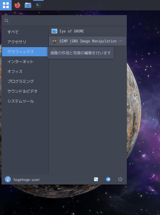1. 概要 画像編集ソフトとして、「GIMP」を使用します。 2. インストール 「root」ユーザ権限で。 yes | pacman -S gimp 3. 起動 「スタート」→「グラフィックス」→「GIMP」