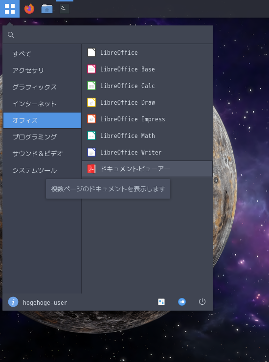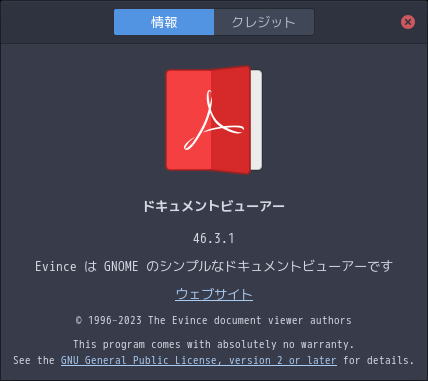 「Xreader」もインストールされていますが、「Evince」の方を使うことにします。