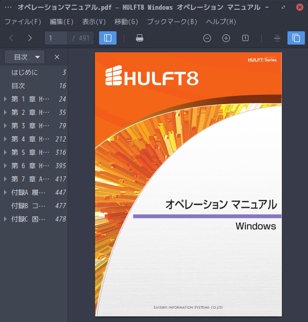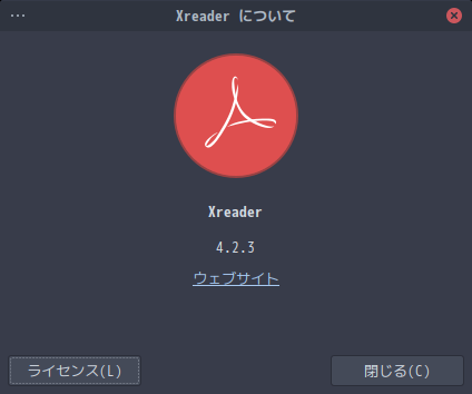 起動直後の状態です。 「.pdf」ファイルを開いてみました。 日本語も正常に表示されます。 2025年2月13日の時点で、下記のバージョンでした。 |