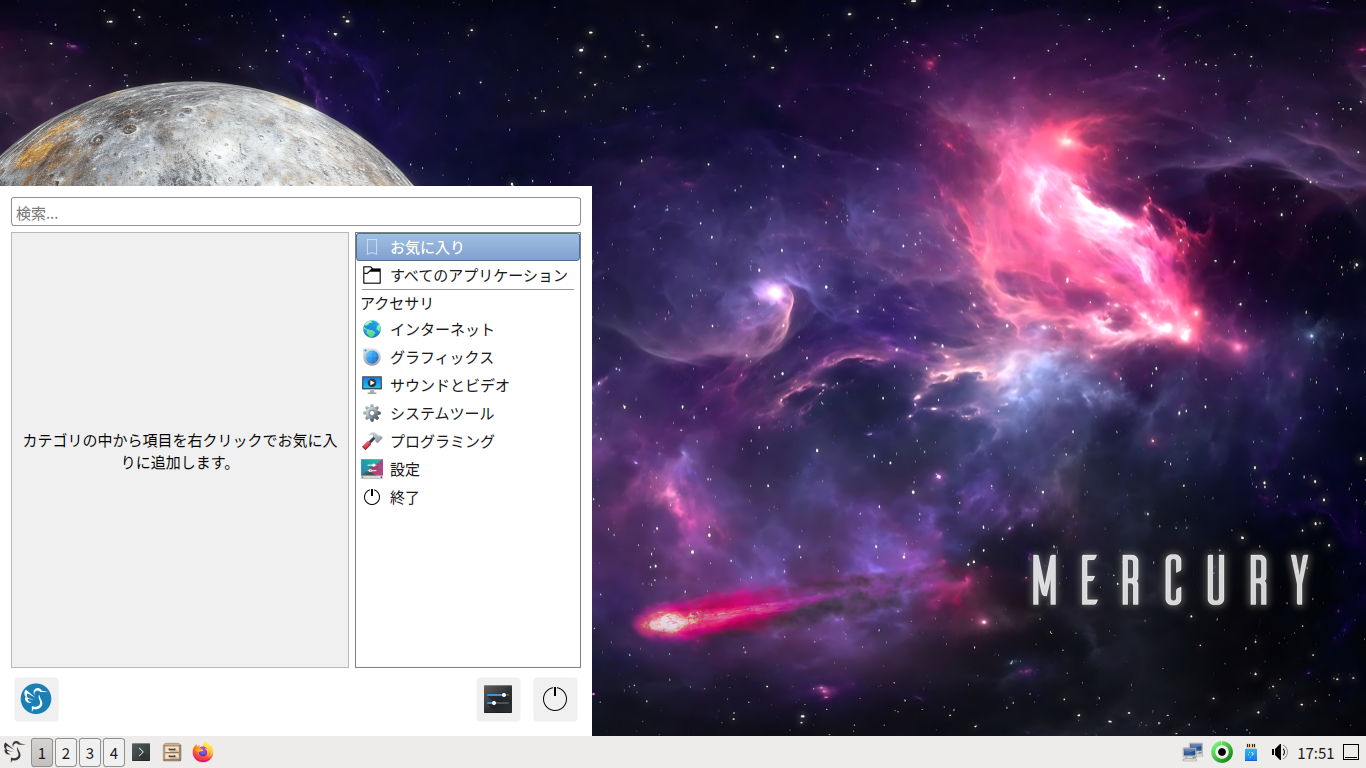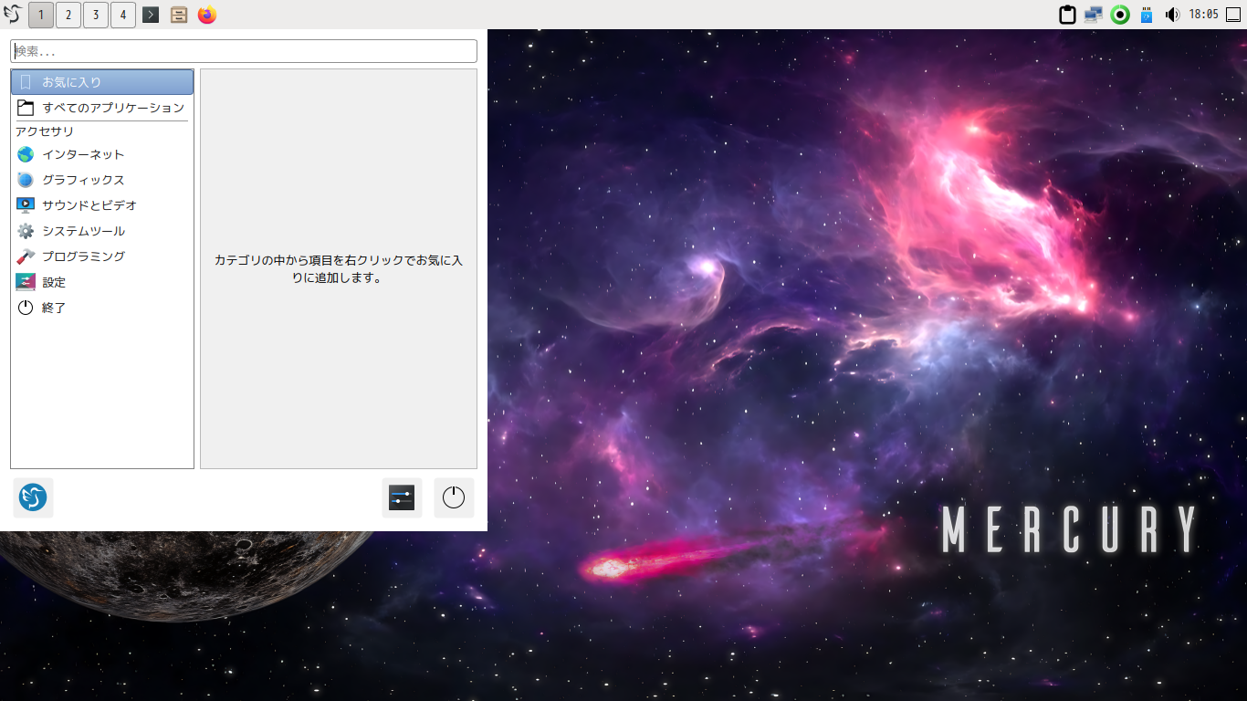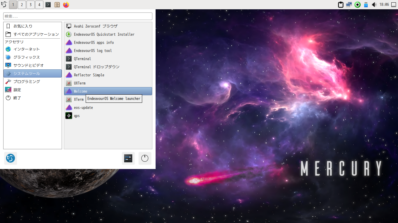 「MigMix」のインストールに関しては、「EndeavourOS - 2025.02.08 - 共通事項」をご参照ください。 カスタマイズ後のデスクトップ・メニューです。