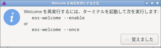 「覚えました」 再度表示するには 「スタート」→「システムツール」→「Welcome」 |