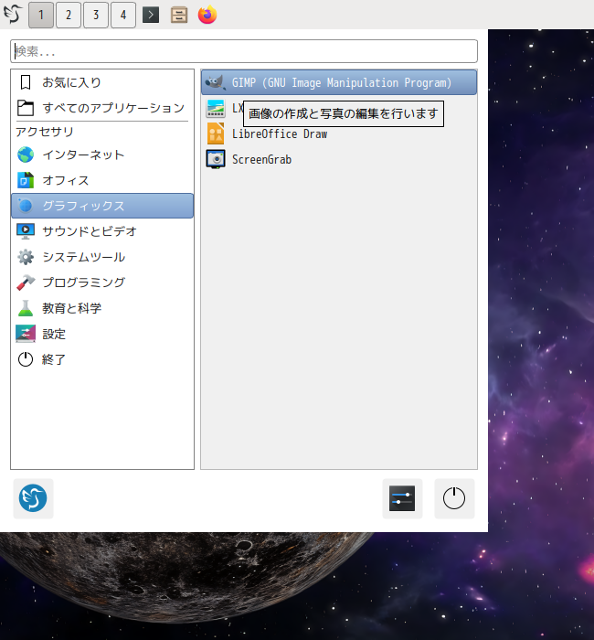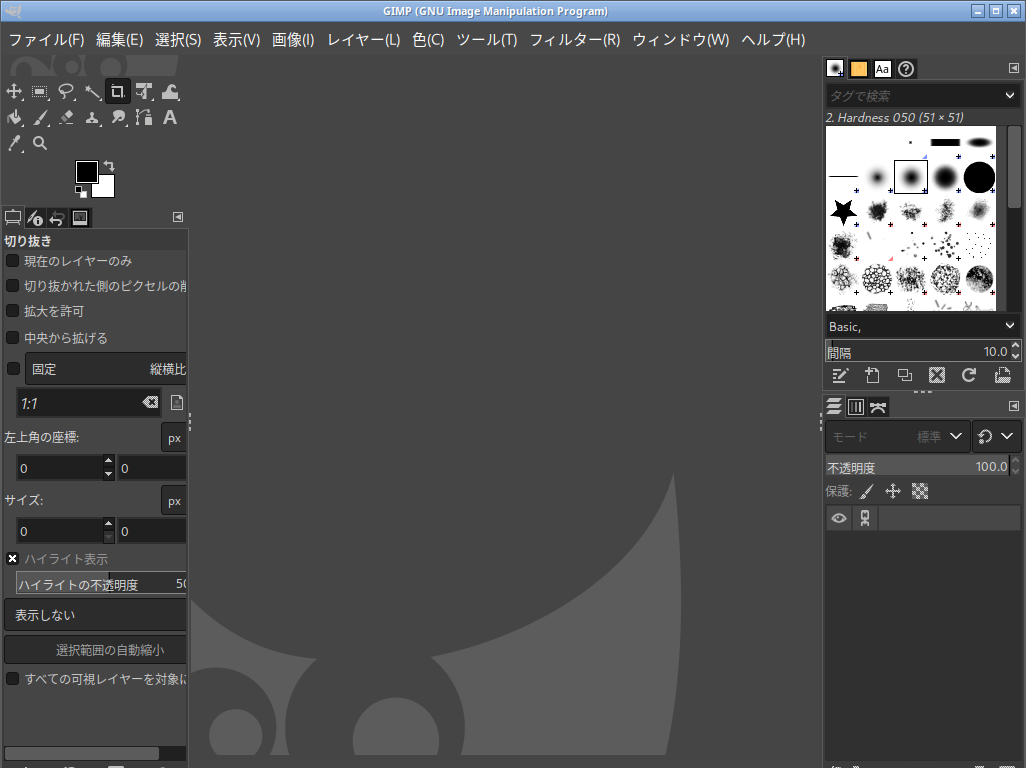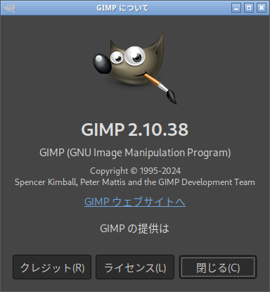 1. 概要 画像編集ソフトとして、「GIMP」を使用します。 2. インストール 「root」ユーザ権限で。 yes | pacman -S gimp 3. 起動 「スタート」→「グラフィックス」→「GIMP」
