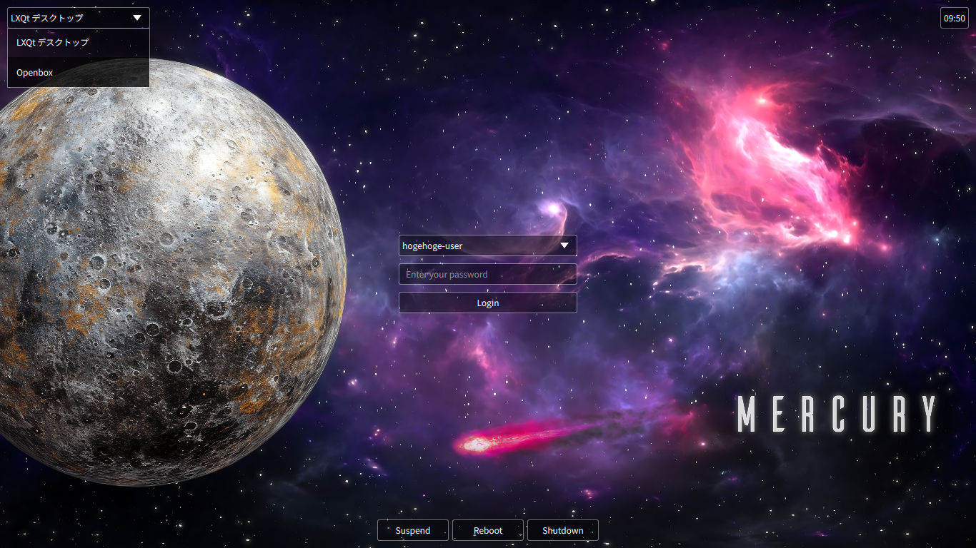 ログイン画面で「Openbox」を選択すれば、「Openbox」の環境へログインできます。