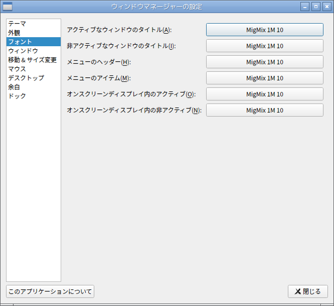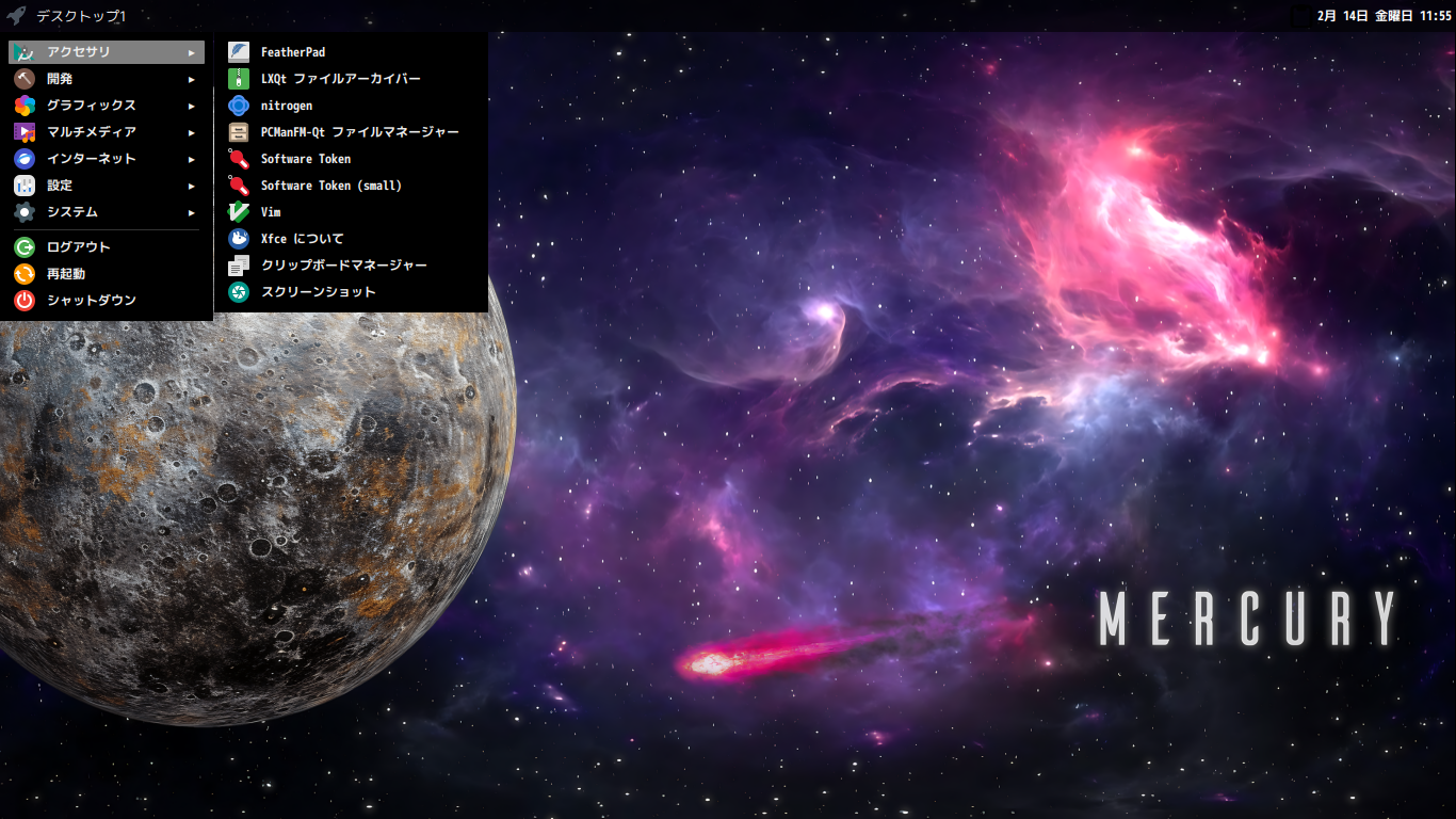 「パネル」「メニュー」は、「tint2」「jgmenu」を使用します。