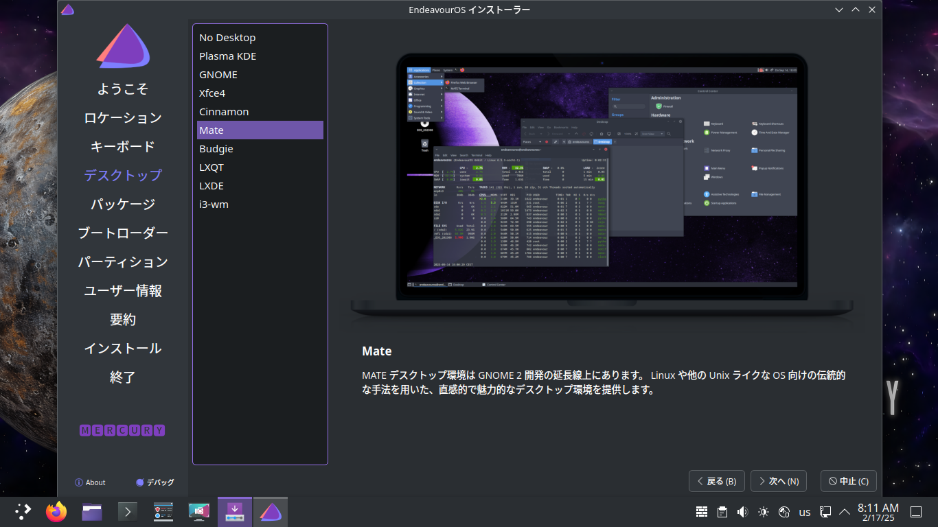 EndeavourOS - 2025.02.08 - MATE - インストール