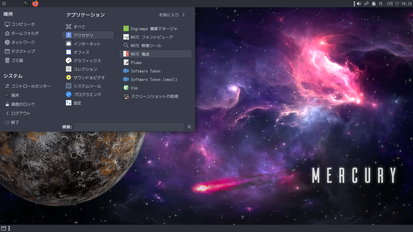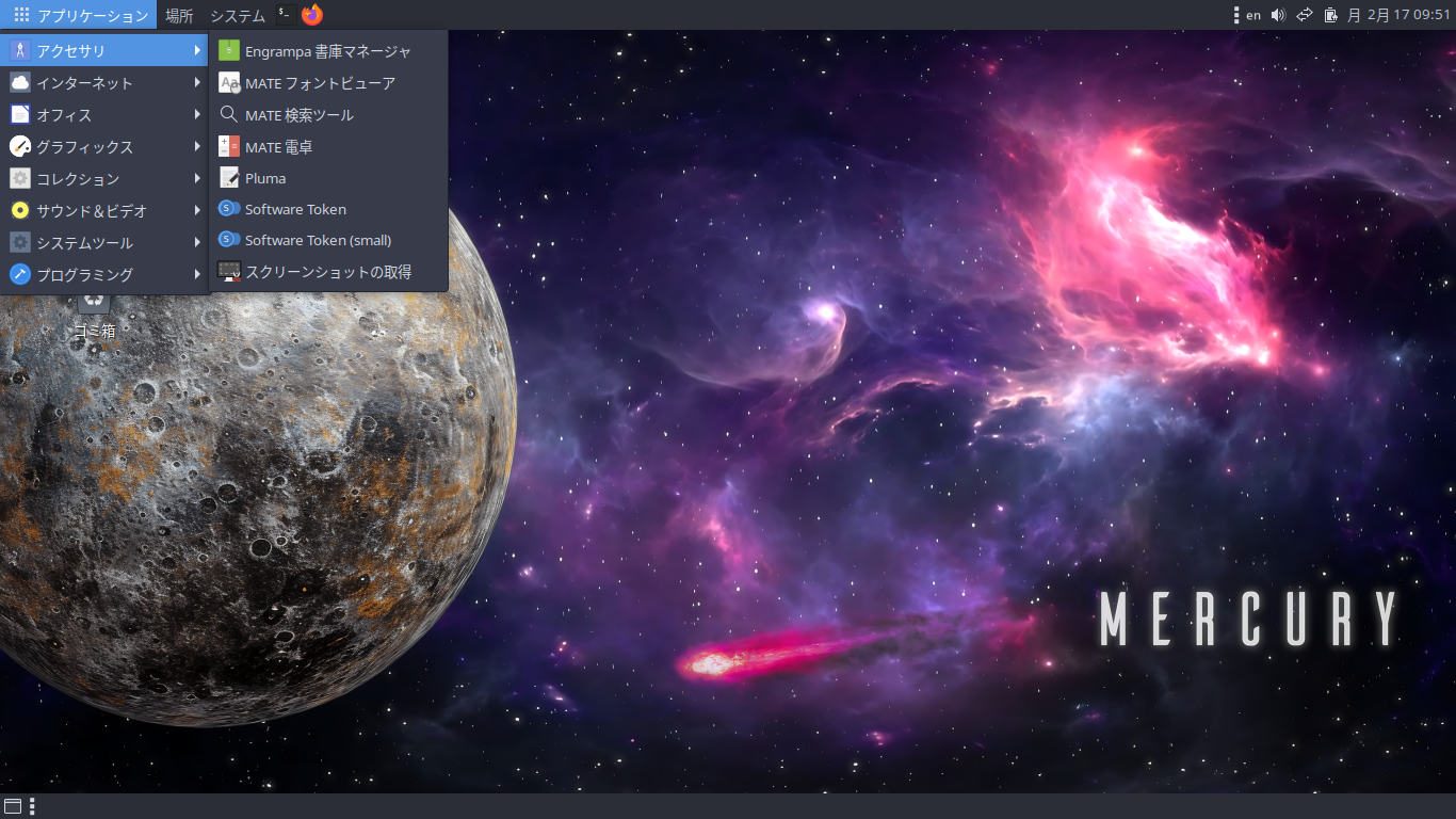 デフォルトのデスクトップ・メニューです。