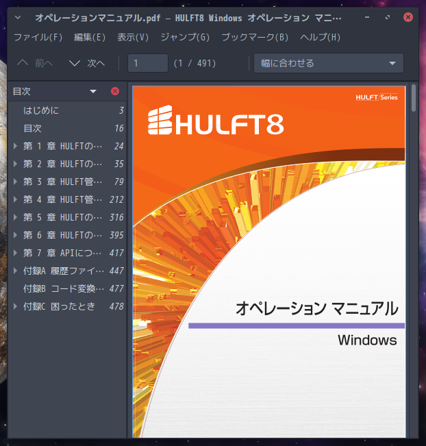起動直後の状態です。 「.pdf」ファイルを開いてみました。 日本語も正常に表示されます。 2025年2月17日の時点で、下記のバージョンでした。 |