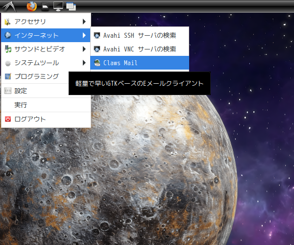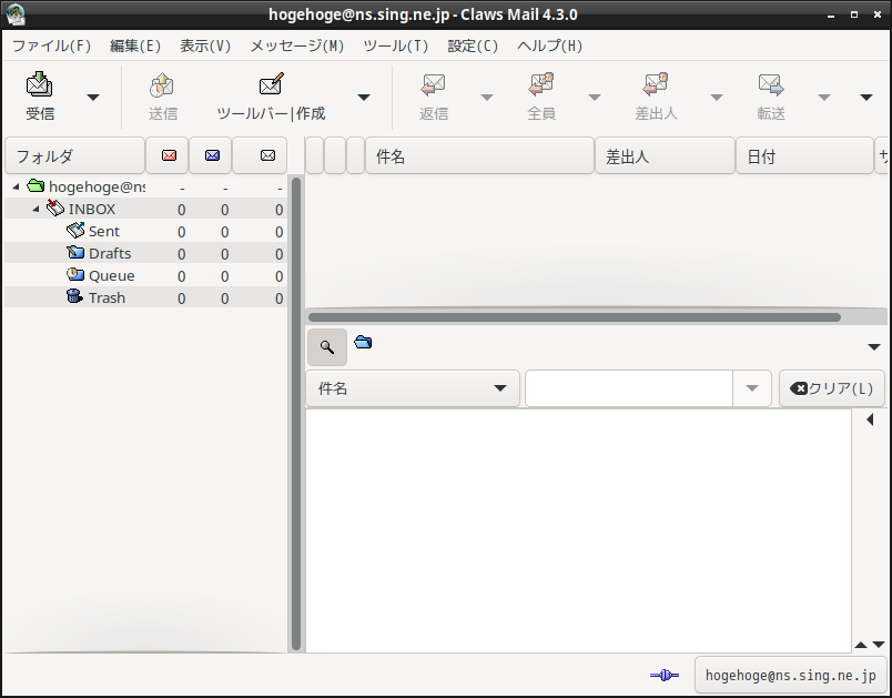 「Claws Mail」をインストールして、使用します。