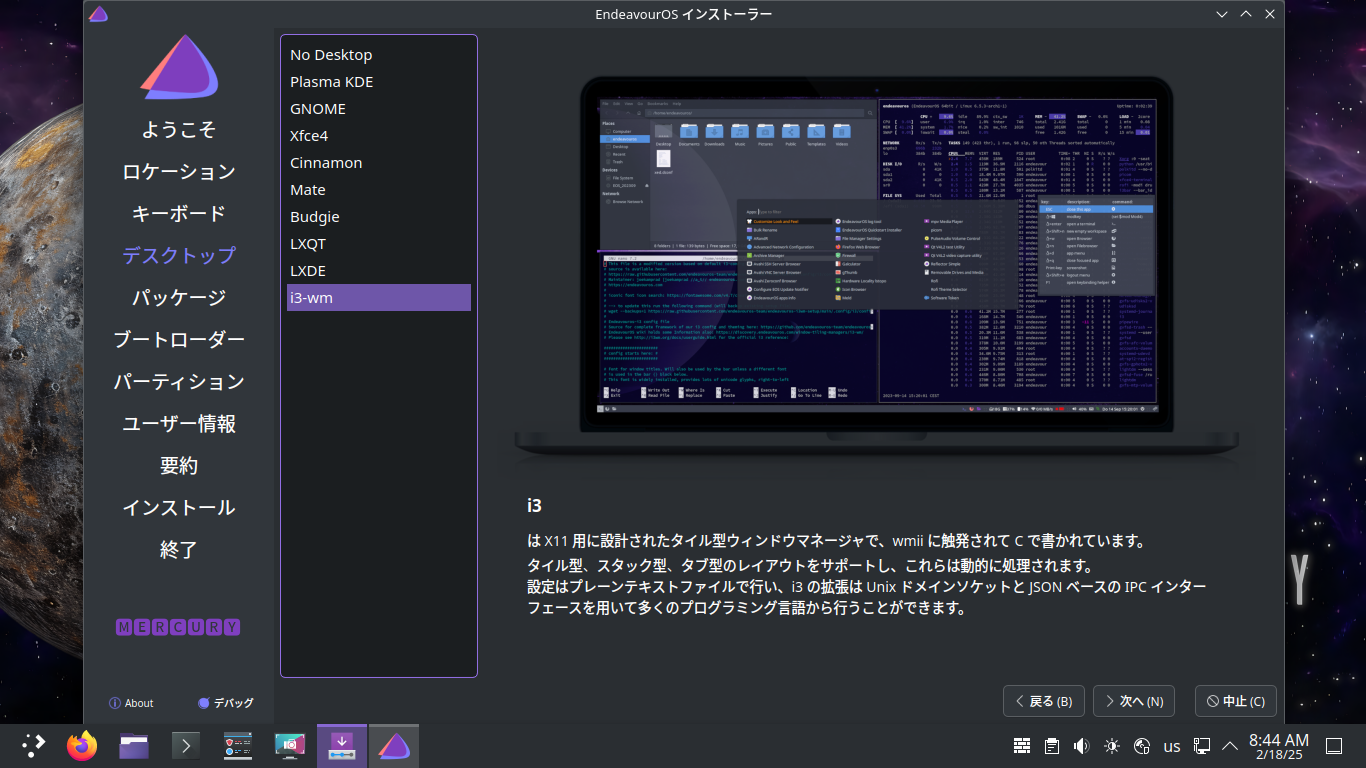 EndeavourOS - 2025.02.08 - i3wm - インストール