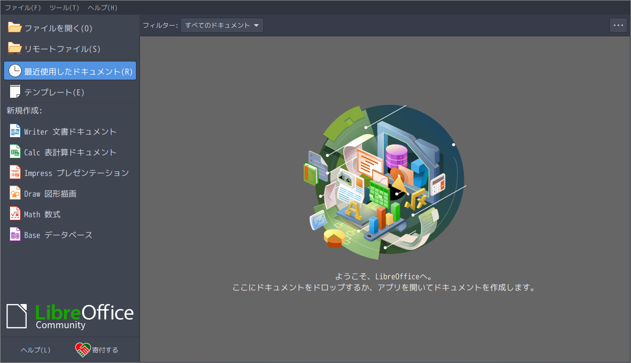 「LibreOffice」のみ、「Welcome」画面よりインストールできますが、後で、日本語化パッケージをインストールする必要があるので、はなから「pacman」でインストールします。