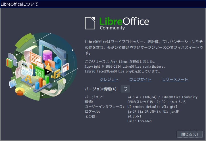 EndeavourOS - 2025.02.08 - i3wm - オフィススイート LibreOffice