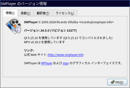 起動直後の状態です。 ビデオコンテンツを再生してみました。 快適に再生できます。 2025年2月18日の時点で、下記のバージョンでした。 |