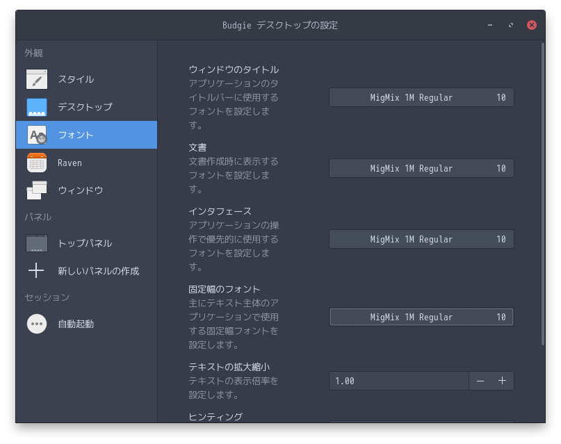 前回のバージョンまでは、このディストリビューションでは、「MigMix 1M」が、文字化けしていましたが、とうとう文字化けしなくなりました。