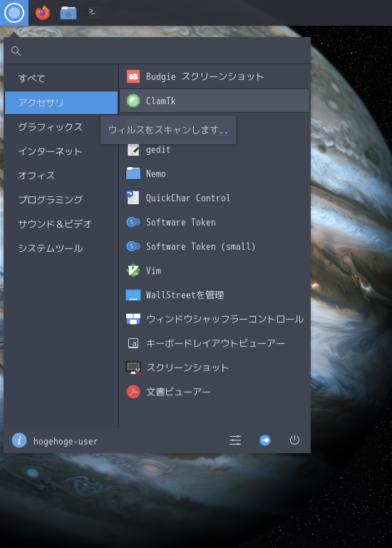 1. 概要 アンチウィルスソフトとして、「ClamTk」を使用します。 2. インストール 「root」ユーザ権限で。 pacman -S clamtk インストールの種類をきいてきたりするので、Enter を2回たたきます。 3. 起動 「スタート」→「アクセサリ」→「ClamTk」