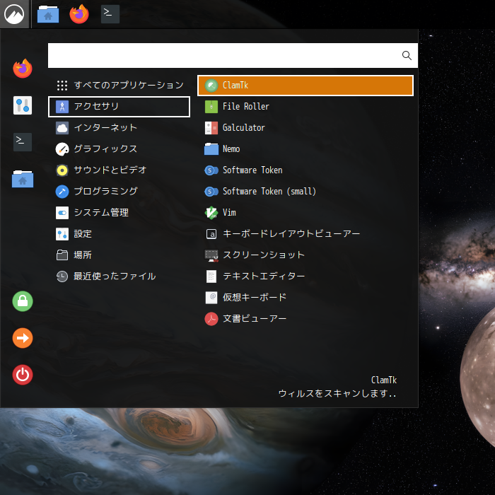 1. 概要 アンチウィルスソフトとして、「ClamTk」を使用します。 2. インストール 「root」ユーザ権限で。 pacman -S clamtk インストールの種類をきいてきたりするので、Enter を2回たたきます。 3. 起動 「スタート」→「アクセサリ」→「ClamTk」