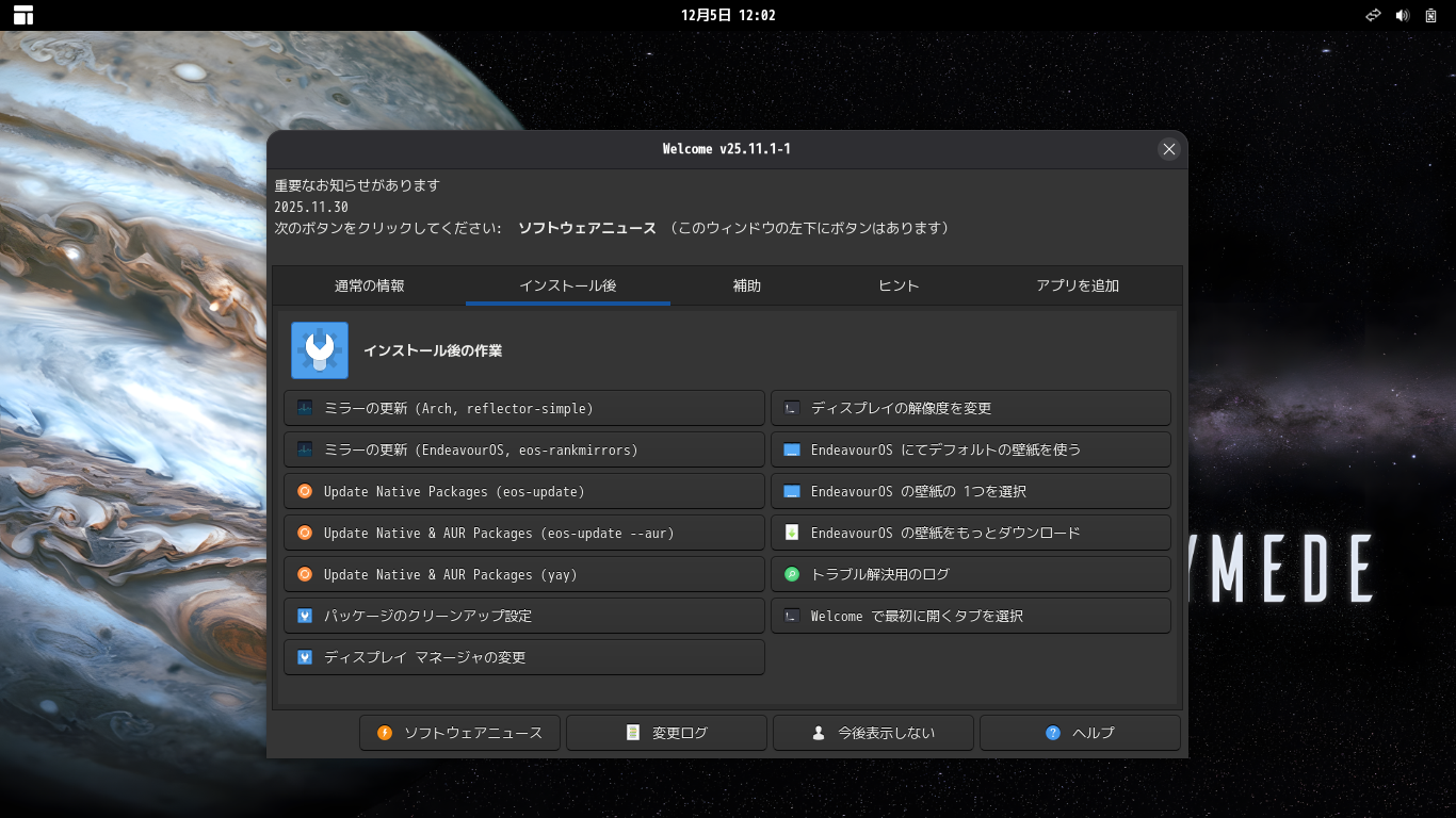 その後、「Arc Menu」に必要なものも含めて、先にインストール、