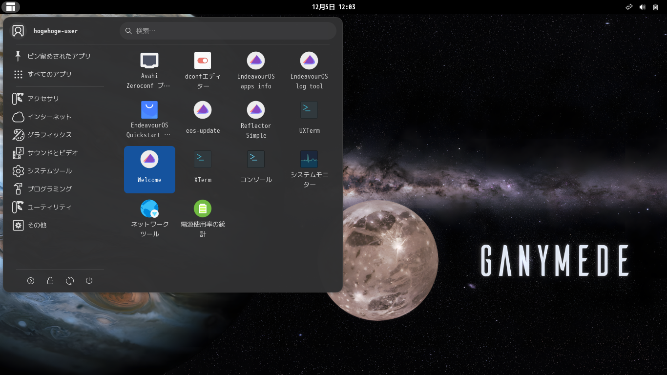 カスタマイズ後のデスクトップ・メニューです。