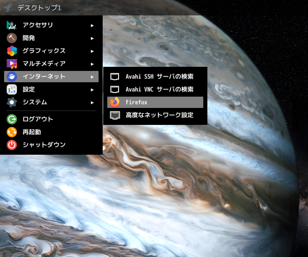 1. 概要 ブラウザとして、「Firefox」がデフォルトでインストールされ、日本語化されています。 「Firefox」の操作に関しては、「ブラウザ - Firefox」をご参照ください。 2. 起動 「スタート」→「インターネット」→「Firefox」