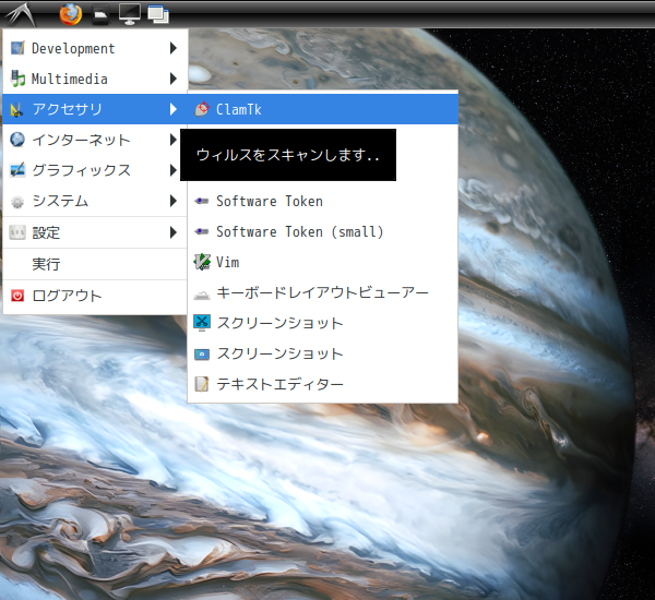 1. 概要 アンチウィルスソフトとして、「ClamTk」を使用します。 2. インストール 「root」ユーザ権限で。 pacman -S clamtk 2回、Enter を入力します。 3. 起動 「スタート」→「ユーティリティ」→「ClamTk」
