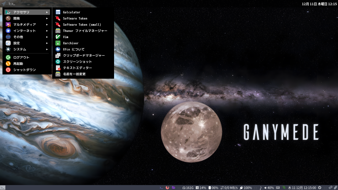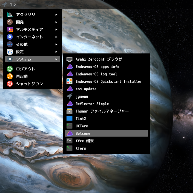 「メニュー」は、「tint2」「jgmenu」を使用します。