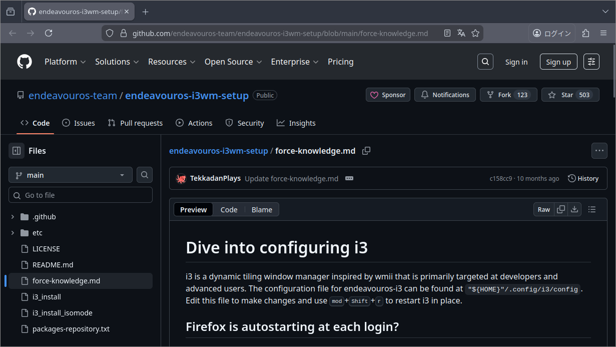 EndeavourOS - 2025.11.24 - i3wm - ブラウザ Firefox