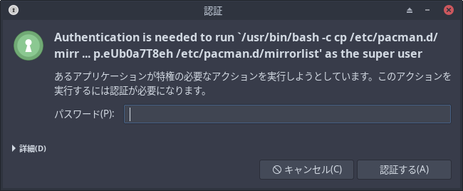 この手のもので、操作するときは、パッケージのインストールも「pacman」コマンドを使用したりします。